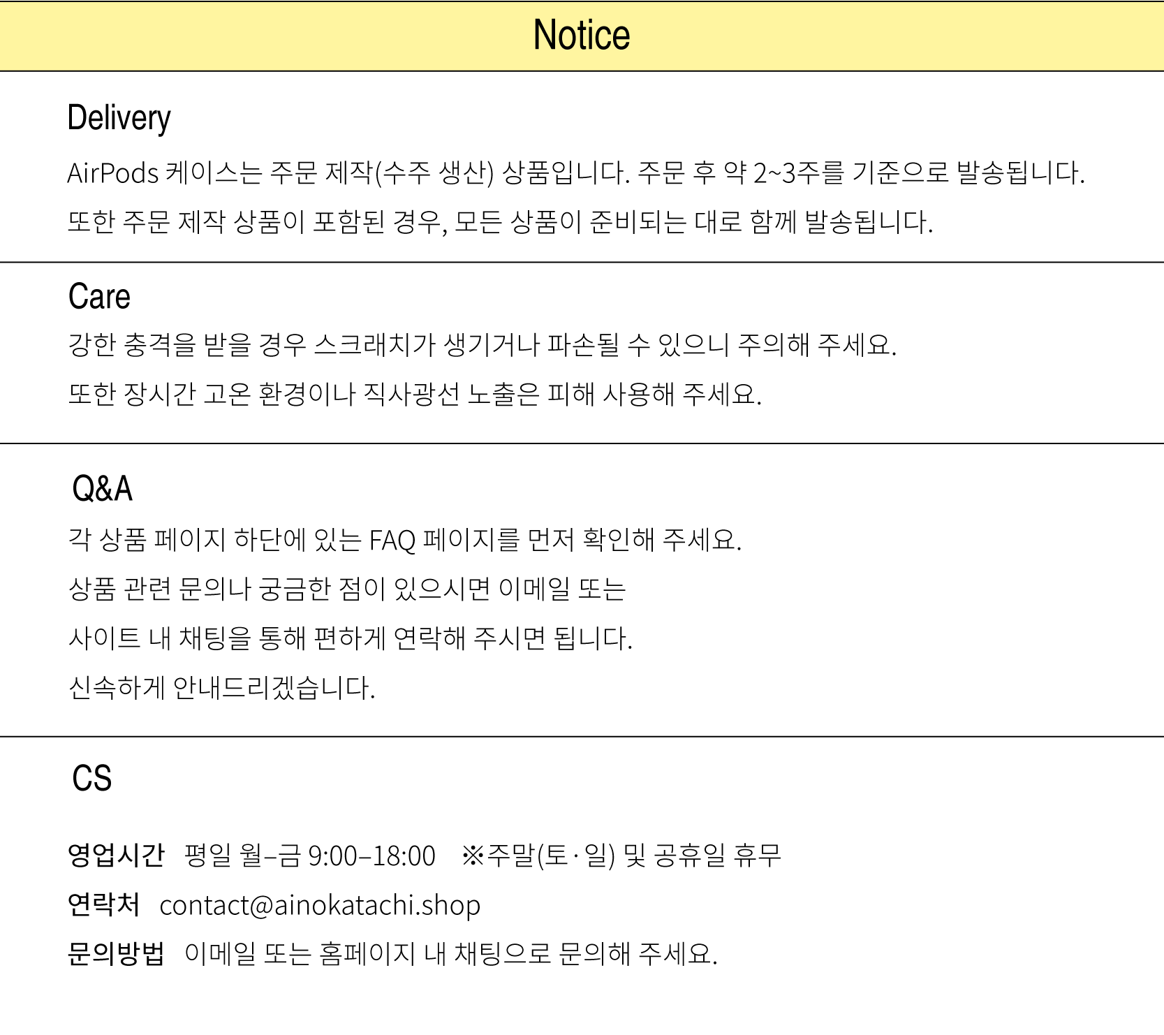 ※주문 제작 상품을 포함한 주문의 경우, 모든 상품이 준비되는 대로 발송됩니다.