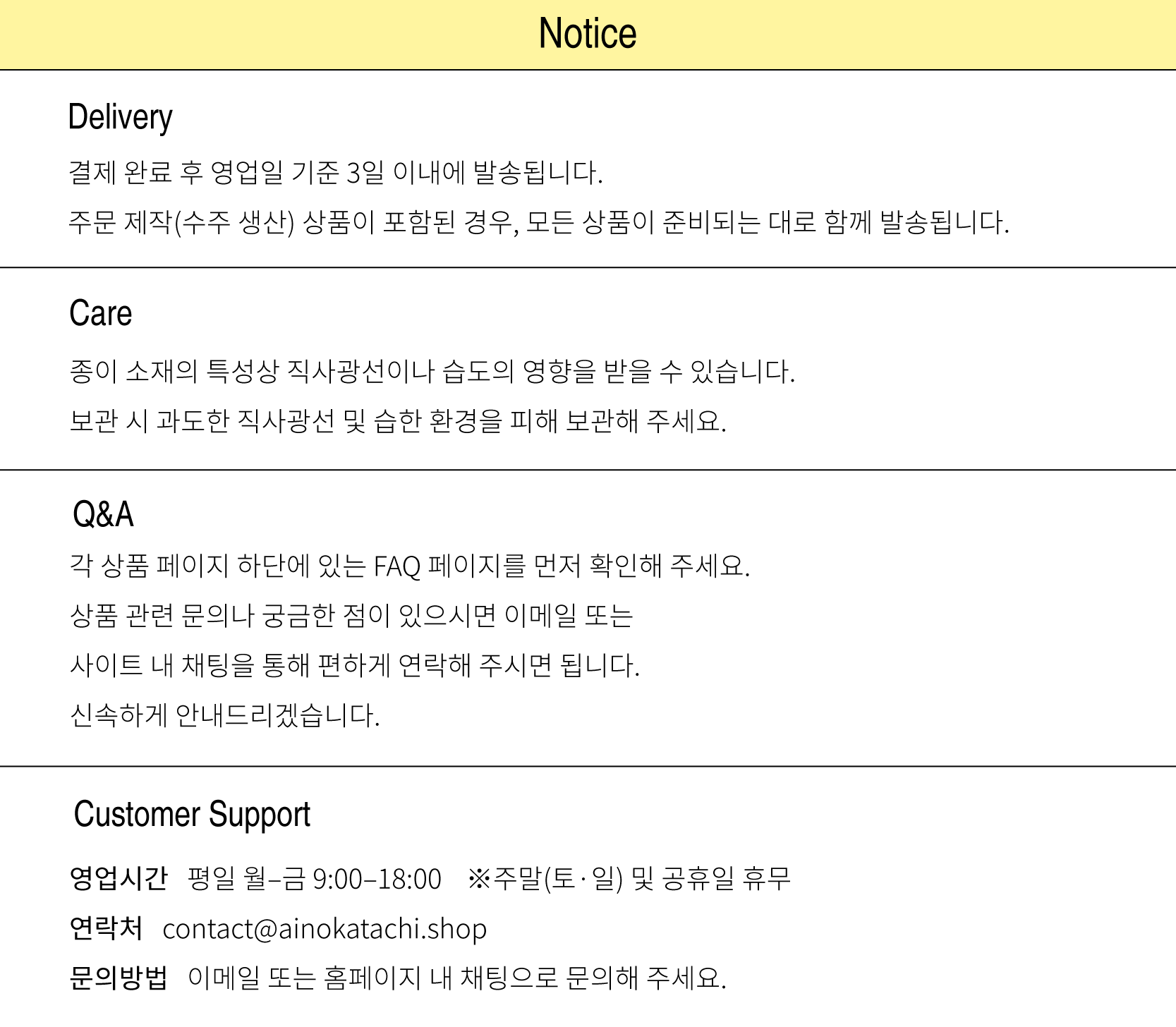 *주문 제작 상품을 포함한 주문의 경우, 모든 상품이 준비되는 대로 발송됩니다.